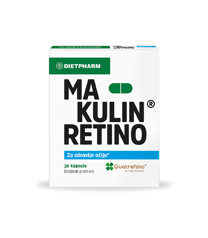 Makulin® Retino je dodatak prehrani sa snažnom kombinacijom luteina, zeaksantina, rutina, aktivnog folata, vitamina B1, B6 i B12 te cinka i selena za zdravlje i zaštitu struktura oka, osobito mrežnice.